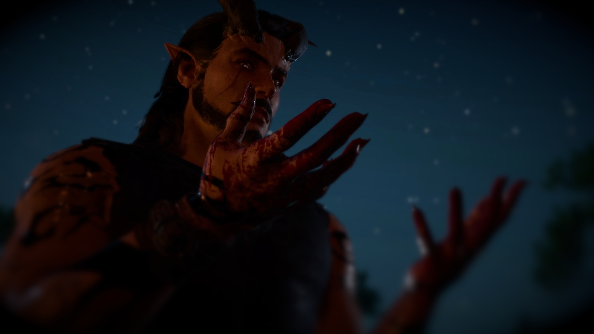 My eyes track the flowing river. All is quiet, clean, and calm. The air is cool, I can hear the tittering of frogs, the snapping twigs of some wild nocturnal creatures off in the distance. I close my eyes and breathe, my shoulders relaxing and my headache gone, tempered, but I'm exhausted. Grateful for the moment of peace, I finally make my way back to camp. Bhaal, Lord of Murder. I will explore what this means in the coming days. I look forward to the power this revelation will bring me. My God. My master. I am his sword to be wielded in his name. His tool to be used. A strange pang of unease grips me and infects my placid heart. To my disappointment I begin to hear the songbirds waking. I look down at my filthy, blood-soaked clothes. Despite my swim in the river, I am still stained, and gods knows what I smell like. I arrive back at camp only to accept that I have one more thing to do, and I will not be getting any more sleep tonight.