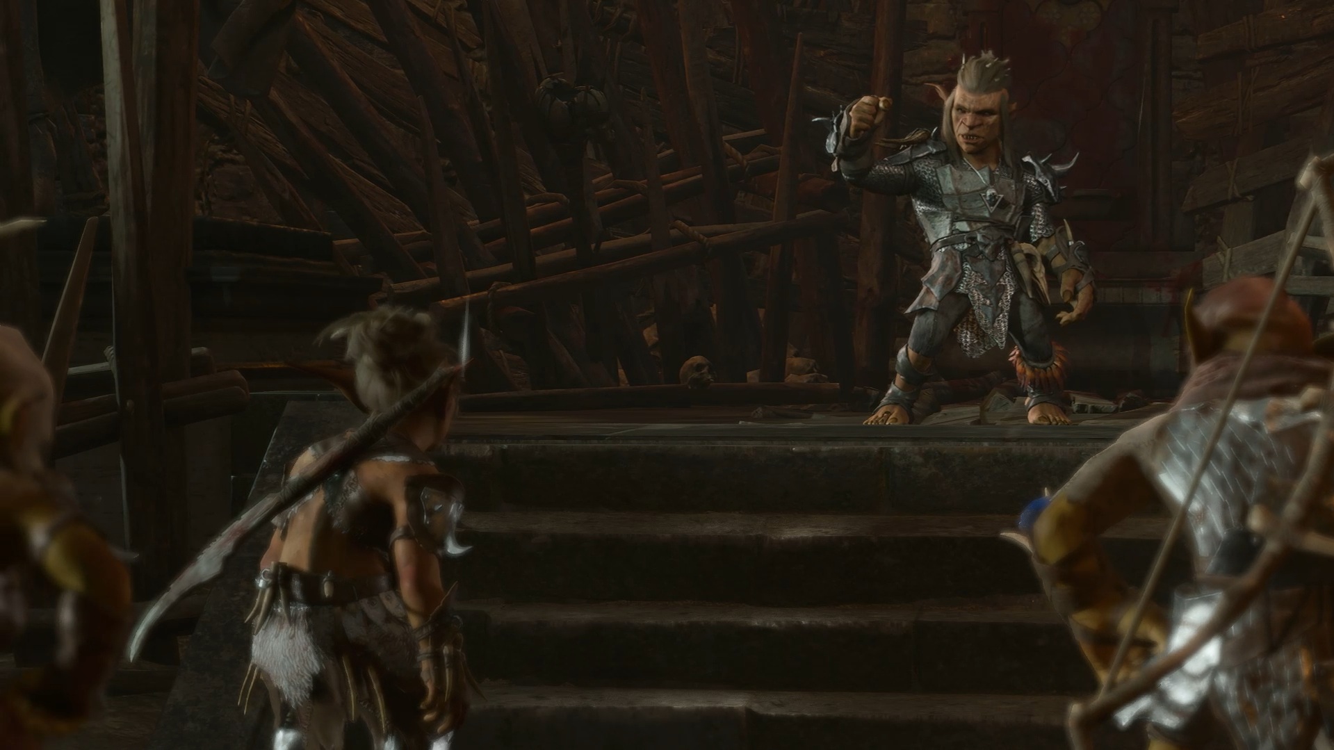 Lae'zel mutters to me, "Don't you dare grovel before this creature."