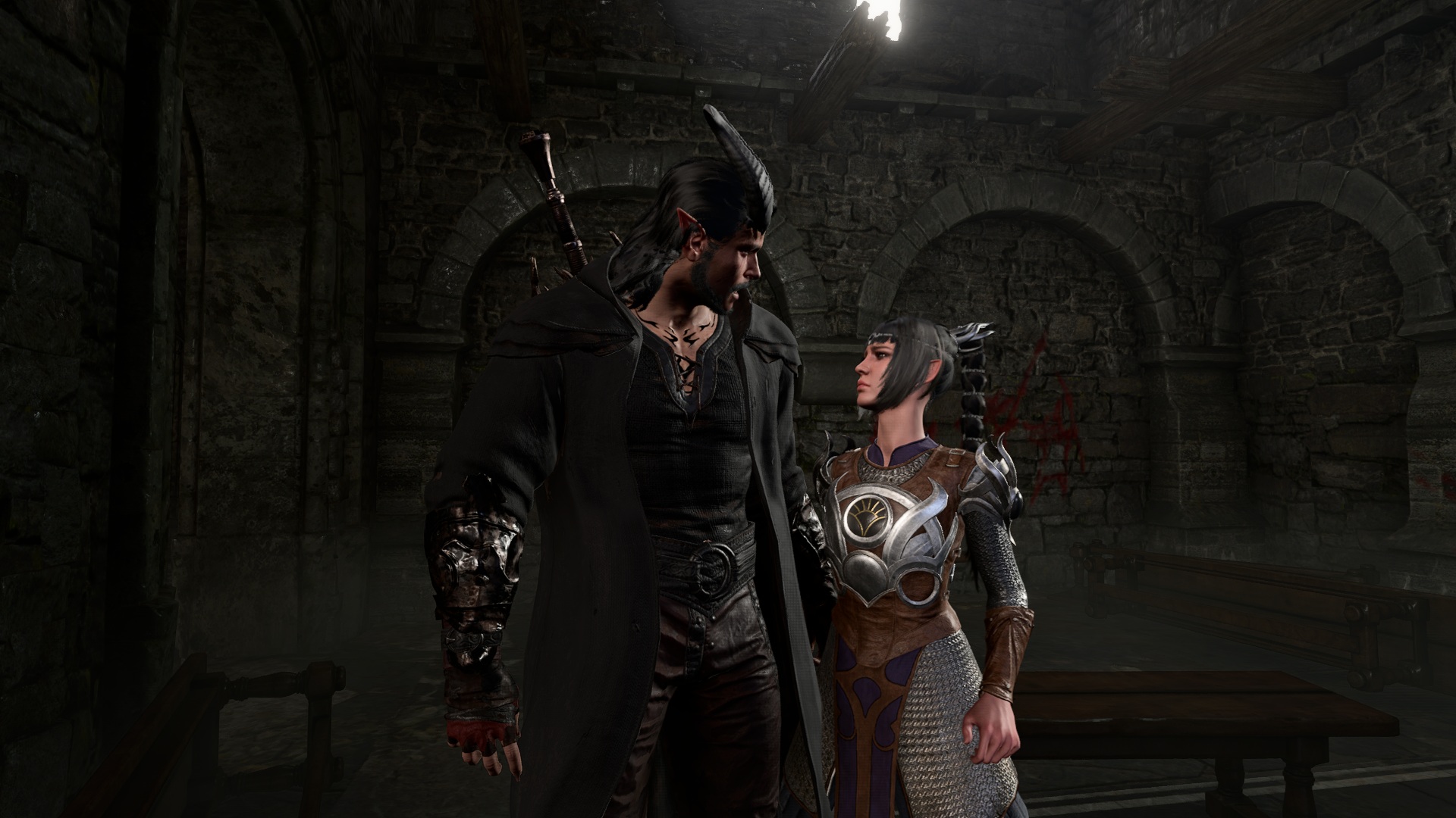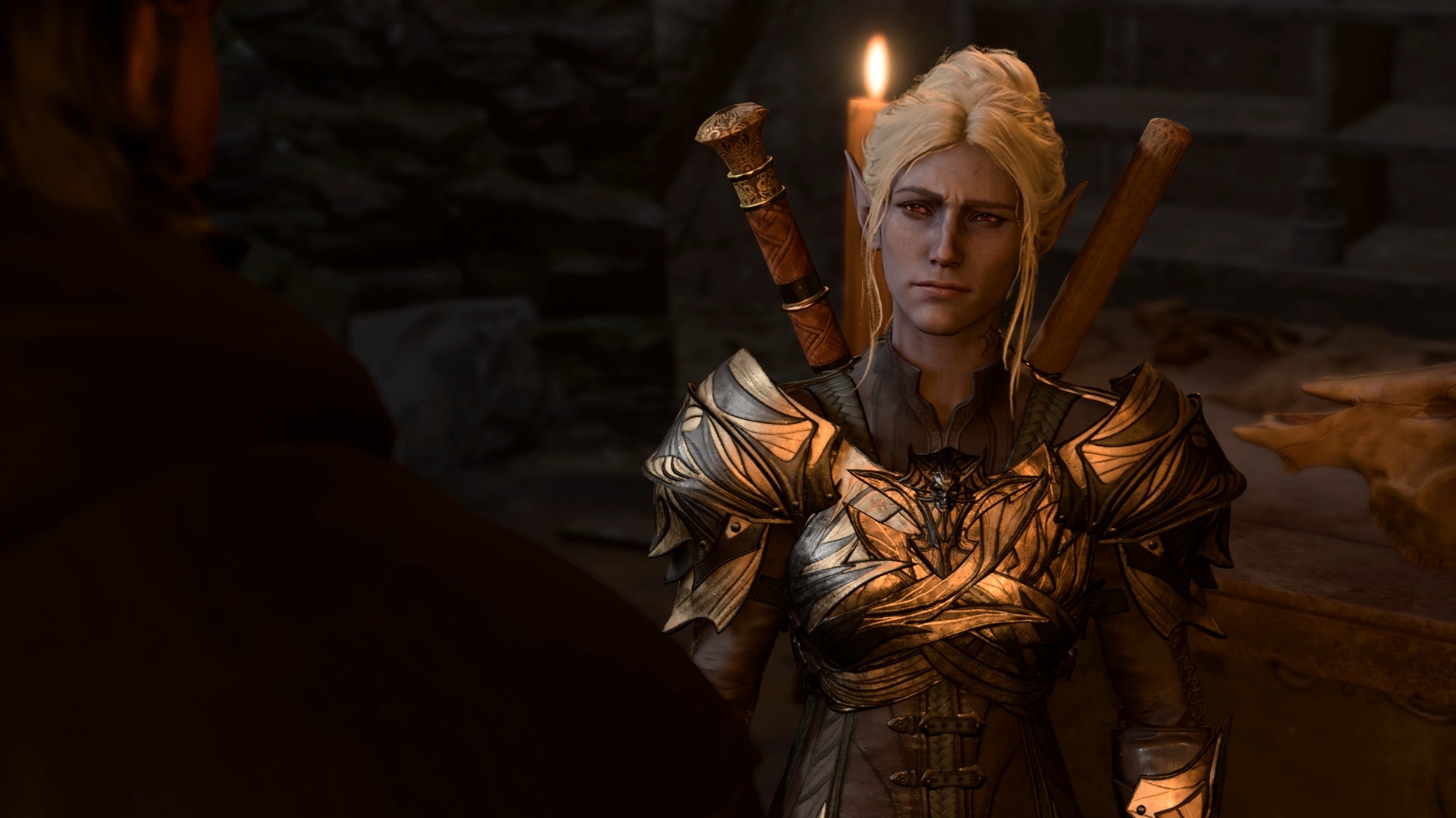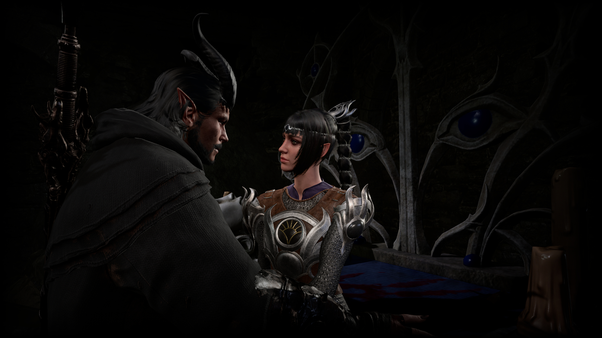 I look back at the others. Astarion is standing just outside the door, pretending not to listen. Lae'zel is poised with her back to us, acting as a lookout. Her stiff demeanor betrays her lingering agitation. Meeting Shadowheart's eye again, I lower my voice, "I am beginning to concede that my oath is lost, like so much of myself. The day may soon come that I swear a new oath to be imbued with new purpose. For now, our survival is my only priority." I can see she is hanging on my words. "After the visions on the bridge, it seems my God is beckoning me to hunt The Chosen of The Absolute. If that is my purpose, then all I can do is ensure the grove's sacrifice serves a greater good."